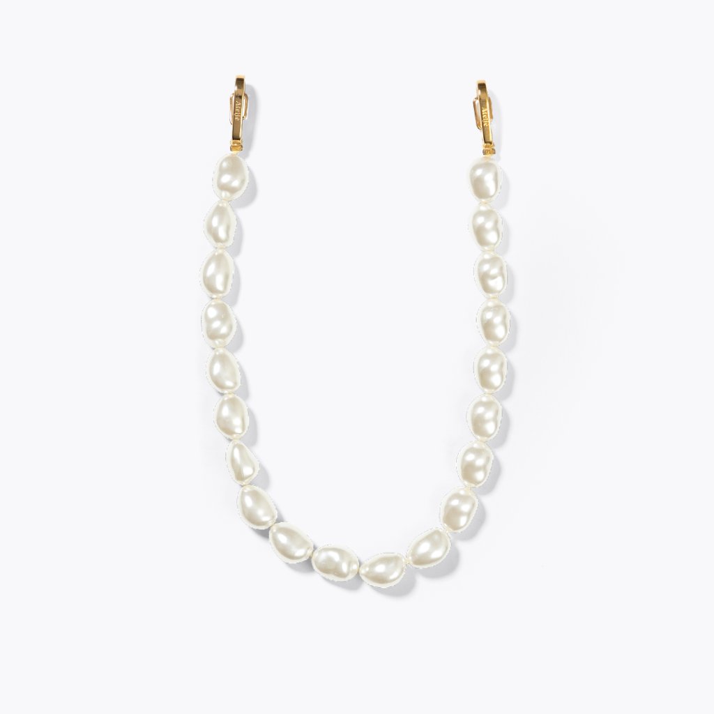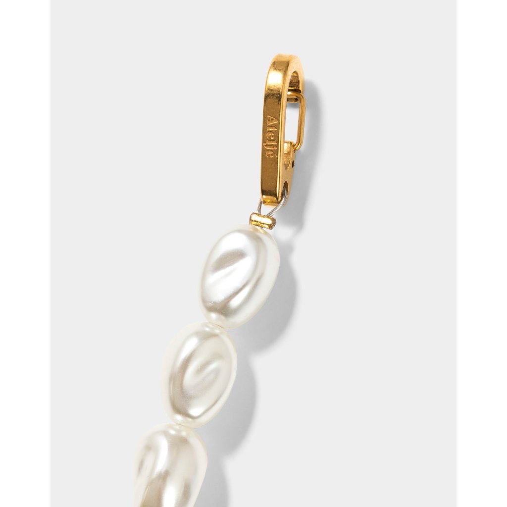 Elegantní přívěsek Ateljé s lesklými bílými perlami dodá vašemu telefonu nádech luxusu a ženskosti. Kombinuje klasický styl s moderní funkčností – jednoduše se připíná ke krytu Ateljé s kroužky a umožňuje nosit telefon stylově přes rameno nebo kolem krku. Každá perla má svůj jedinečný tvar, což zaručuje originální vzhled každého kusu.