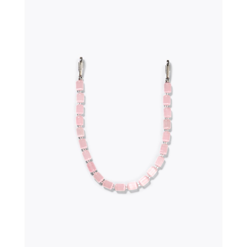 Krátká korálková šňůrka Atelje v jemné růžové barvě s karabinami, elegantní a praktický doplněk.