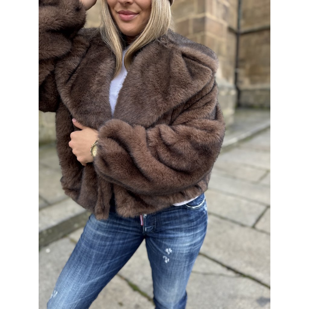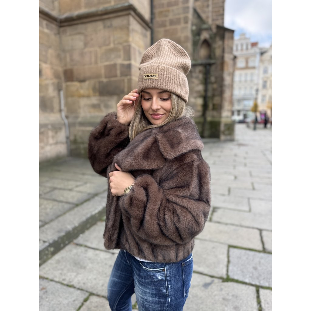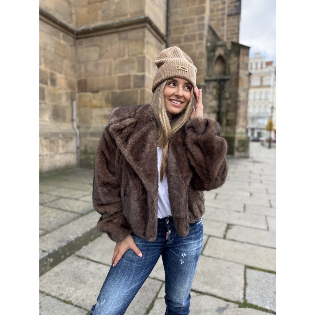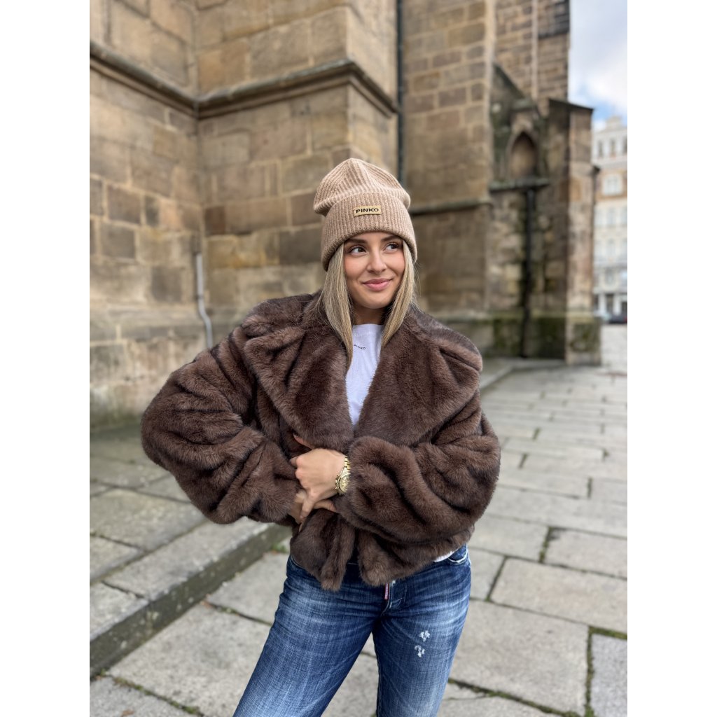 Stylový krátký dámský kožich Twinset z umělé kožešiny v hnědé barvě. Elegantní, hřejivý a ideální pro chladné dny.