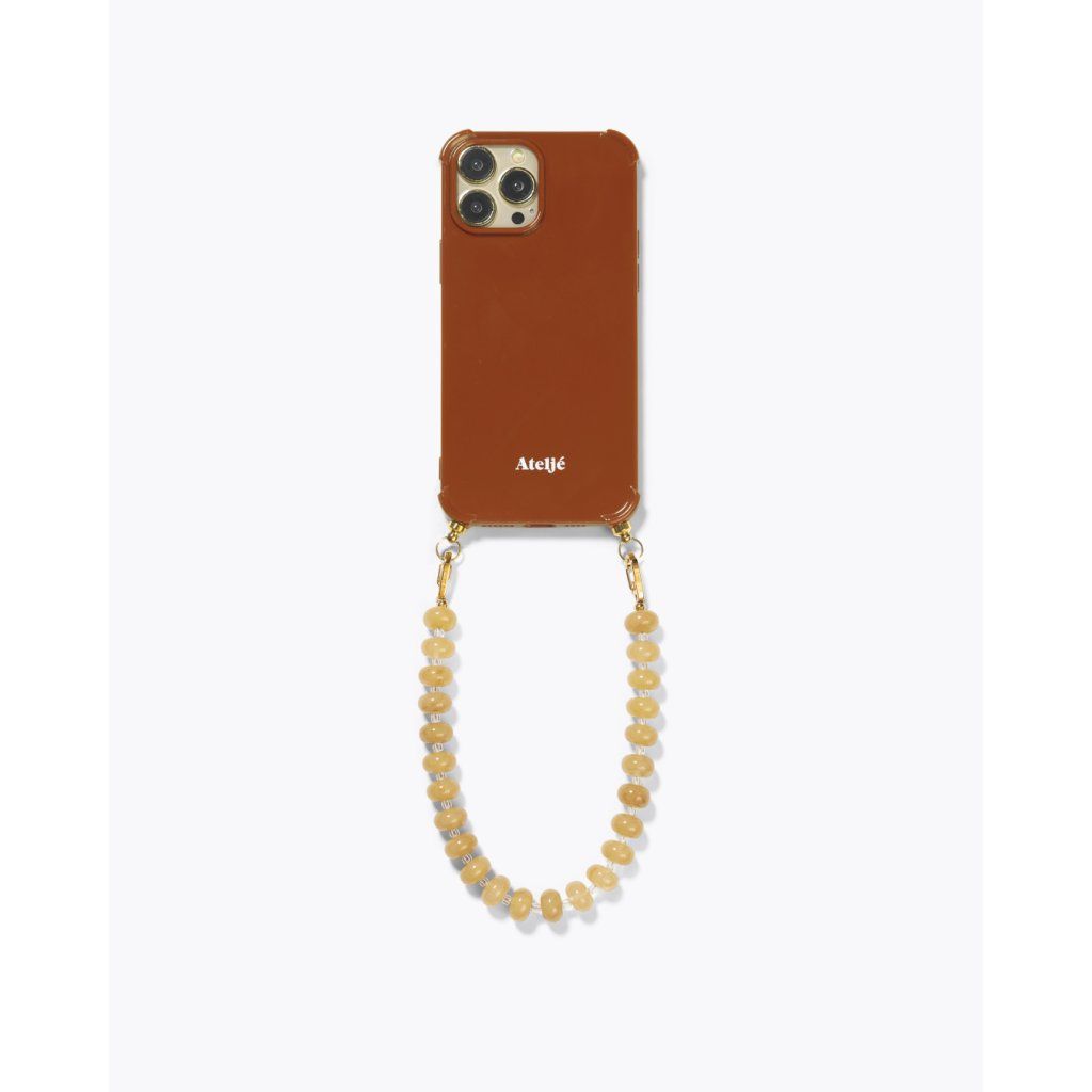 Ateljé kryt na telefon v hnědém provedení. Stylový a odolný doplněk s možností připnutí popruhu nebo přívěsku.