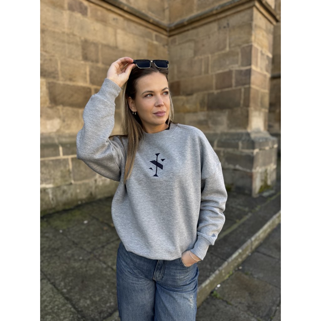 Šedá mikina ICON Club bez kapuce s minimalistickou výšivkou na hrudi. Pohodlný unisex střih, kvalitní materiál a čistý design pro každý den.