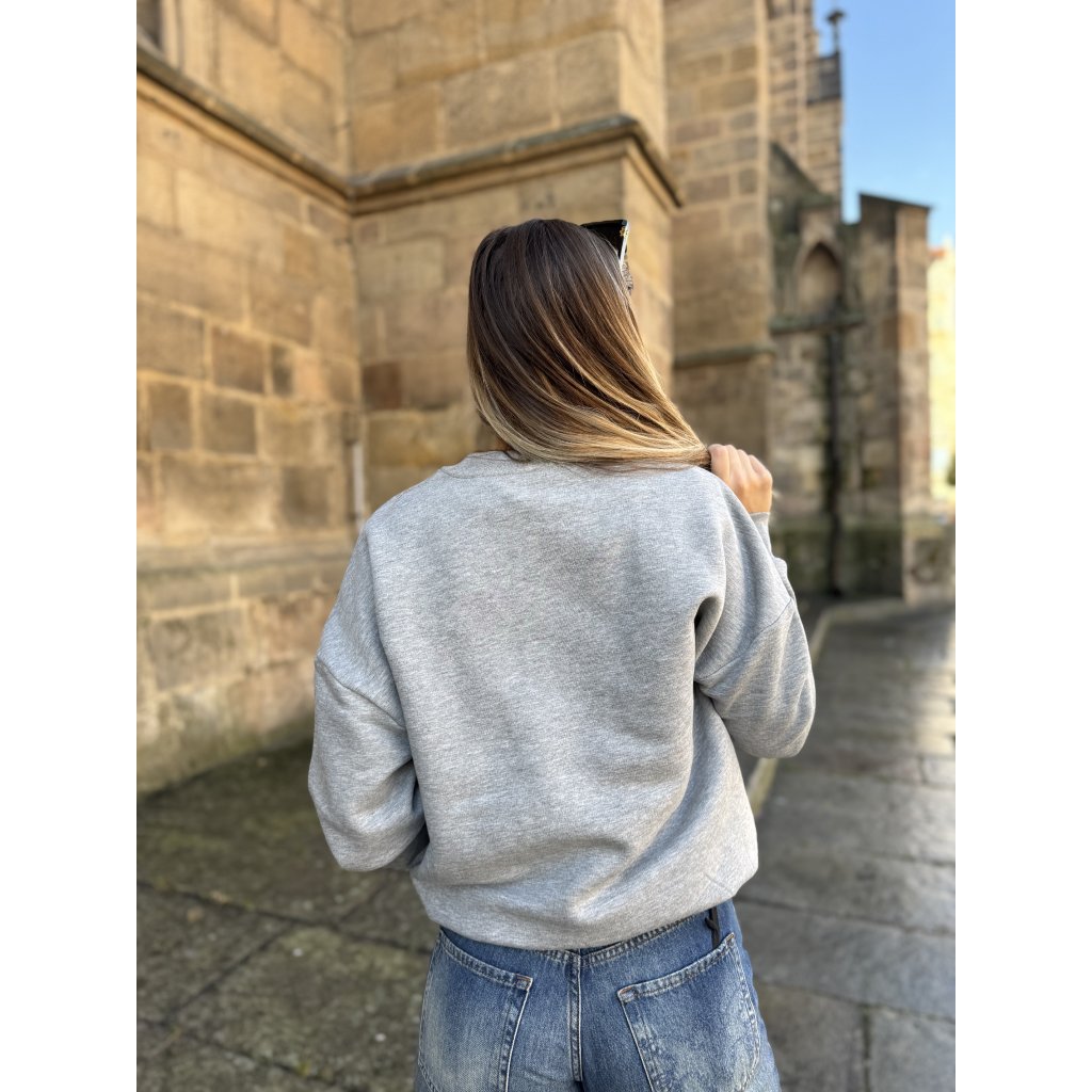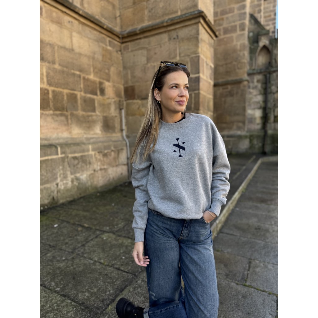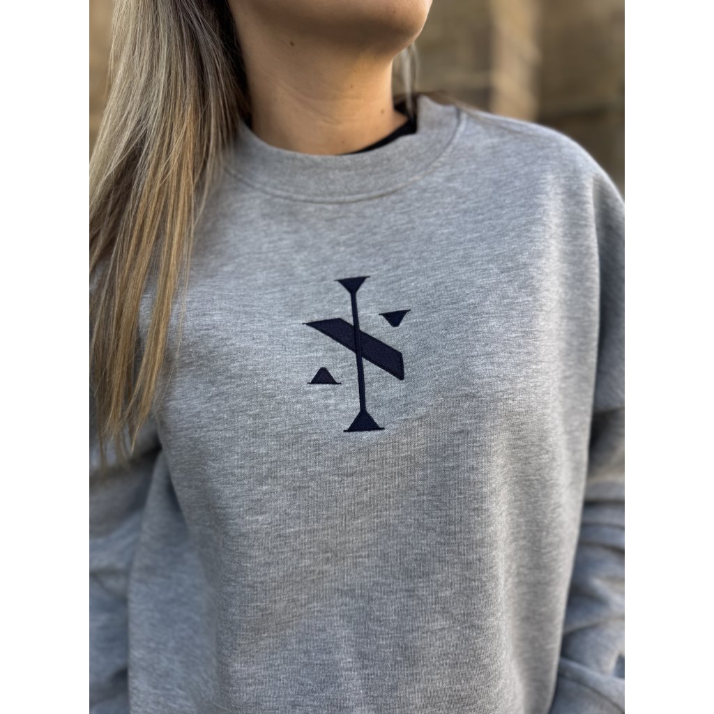 Šedá mikina ICON Club bez kapuce s minimalistickou výšivkou na hrudi. Pohodlný unisex střih, kvalitní materiál a čistý design pro každý den.