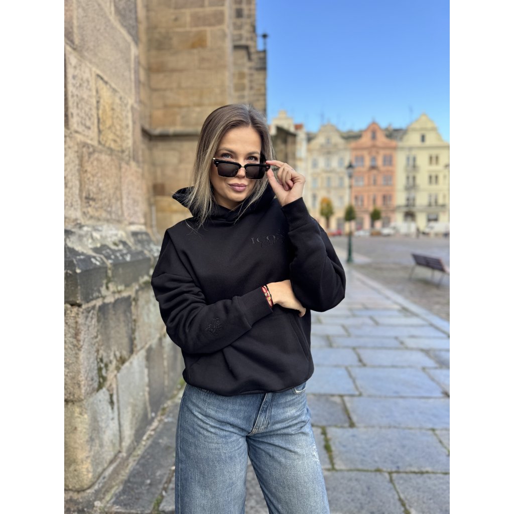 Černá mikina ICON Club s tonální výšivkou a minimalistickým designem. Stylový unisex kousek z prémiového materiálu pro každodenní pohodlí a čistý look.