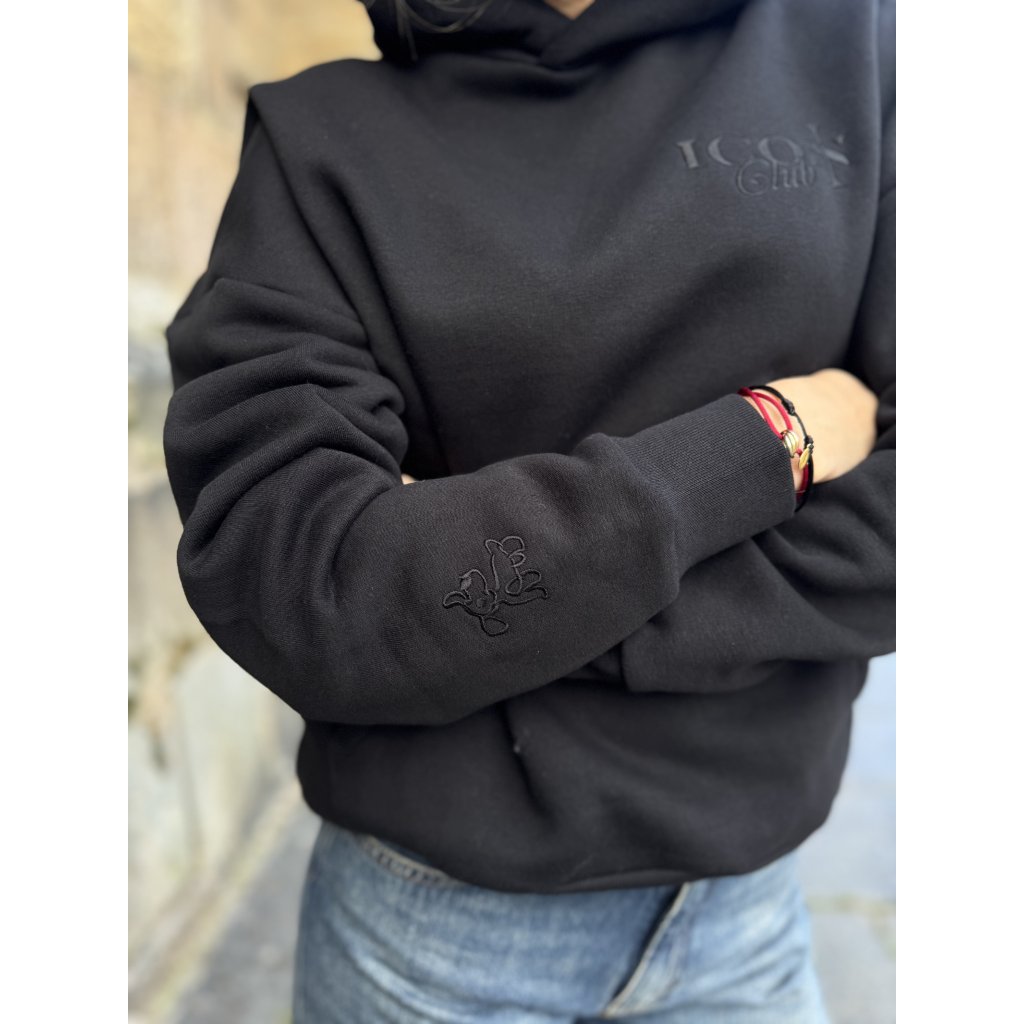 Černá mikina ICON Club s tonální výšivkou a minimalistickým designem. Stylový unisex kousek z prémiového materiálu pro každodenní pohodlí a čistý look.