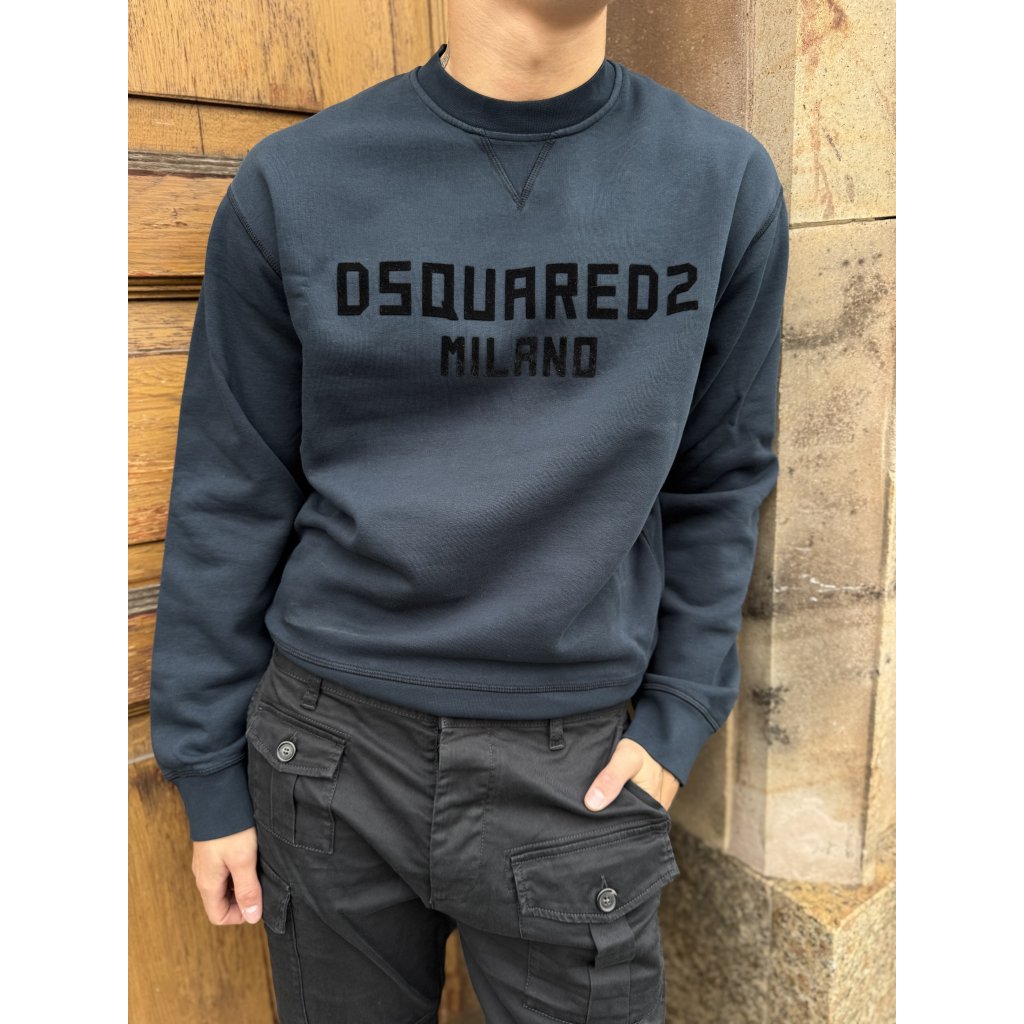 Pánská mikina DSQUARED2 (S74GU0889 D2501) v modré barvě s logem značky – stylový a pohodlný kousek z prémiové bavlny.