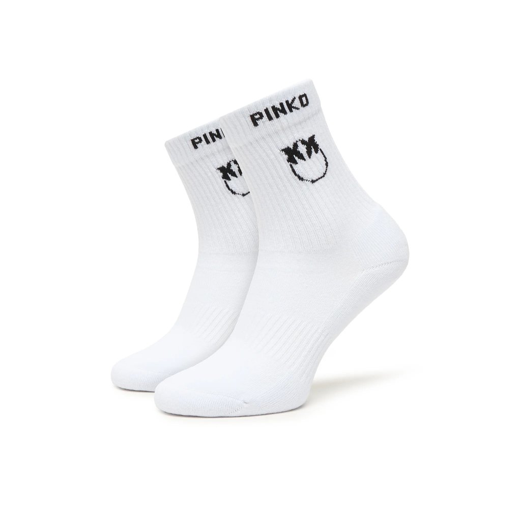 Stylové bílé ponožky PINKO s černým logem Love Birds. Pohodlný bavlněný materiál a moderní sportovní design pro každodenní nošení.